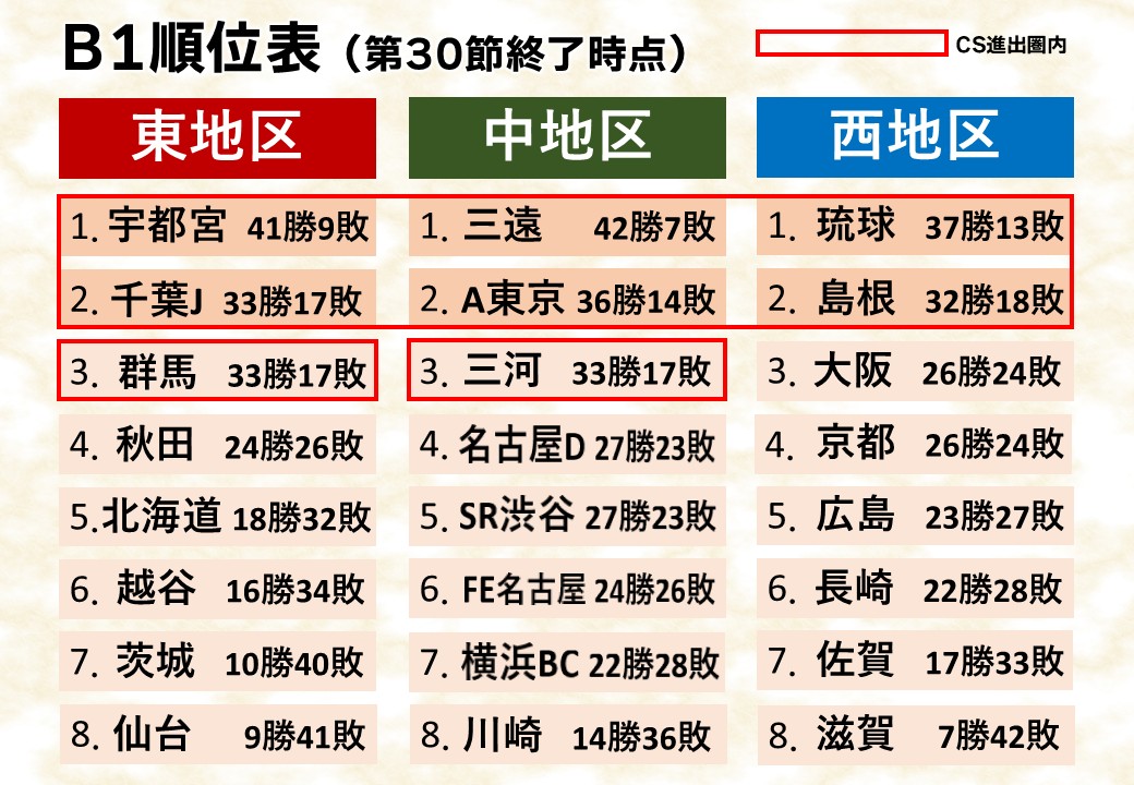 - 7 Bリーグ1部2024-25シーズン第30節(4/9)の試合結果