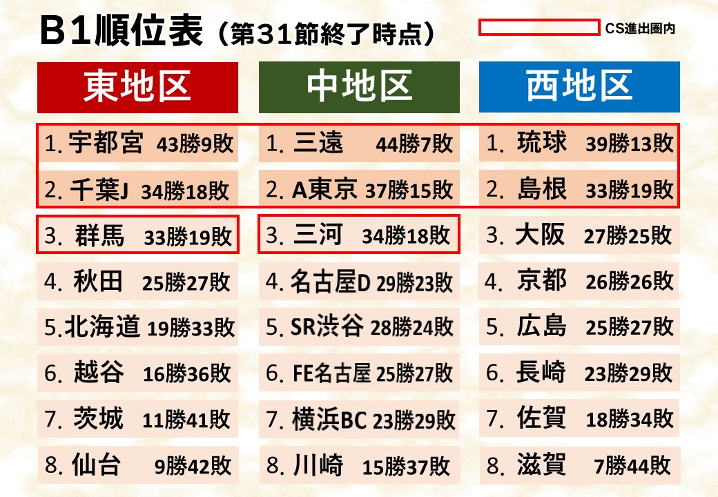 - 6 Bリーグ1部2024-25シーズン第31節(4/12,13)の試合結果