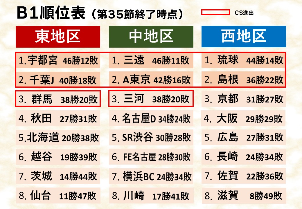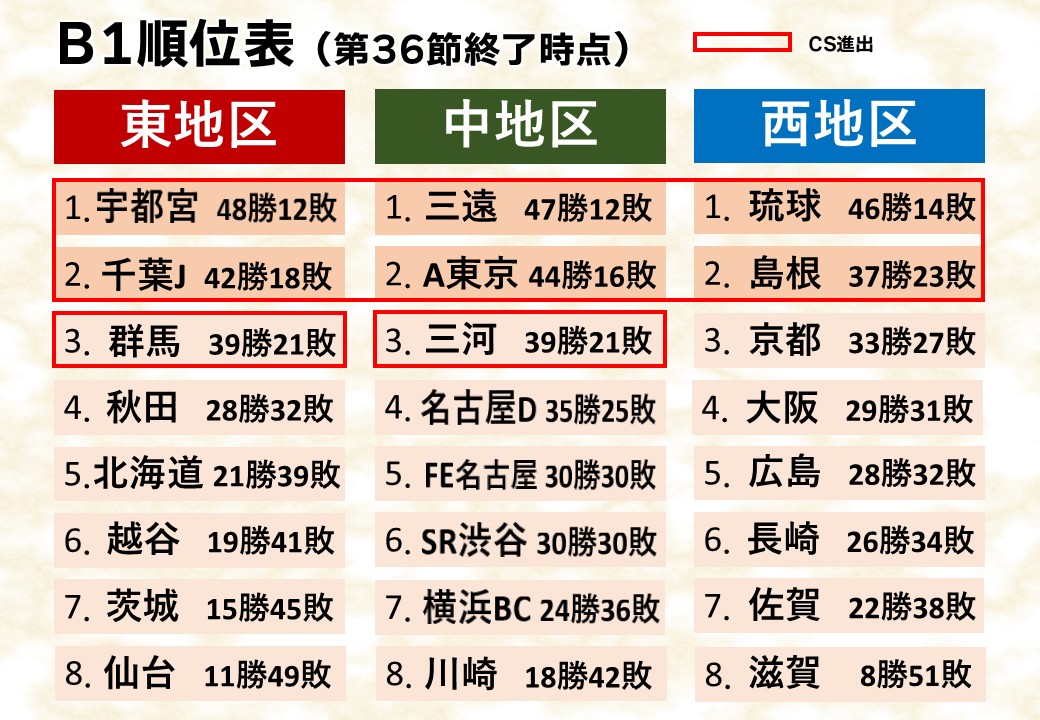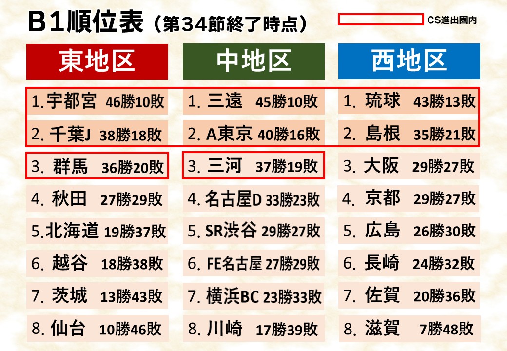 - 3 Bリーグ1部2024-25シーズン第34節(4/23)の試合結果