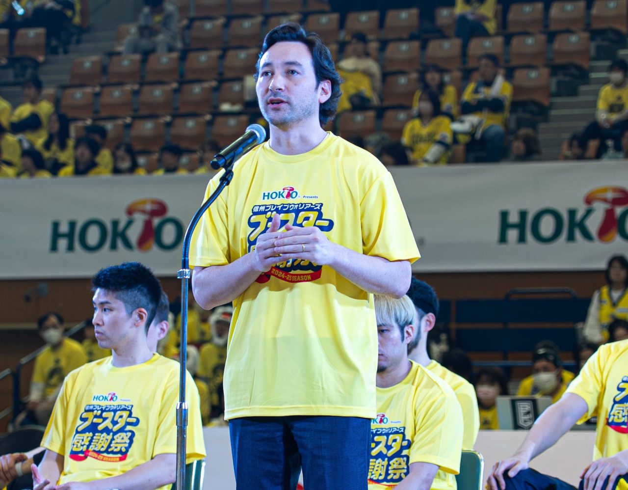A千葉とは今季4戦を戦い、ここまで全敗の信州。青森との第2戦後に開かれたブースター感謝祭で石川は「まだ残り2試合、A千葉さんとの試合が残っていて、僕らは絶対POをホーム開催したいと思っているので。ぜひ千葉に来ていただいて、一緒に戦ってくれるとうれしいなと思います」とブースターに呼びかけた。