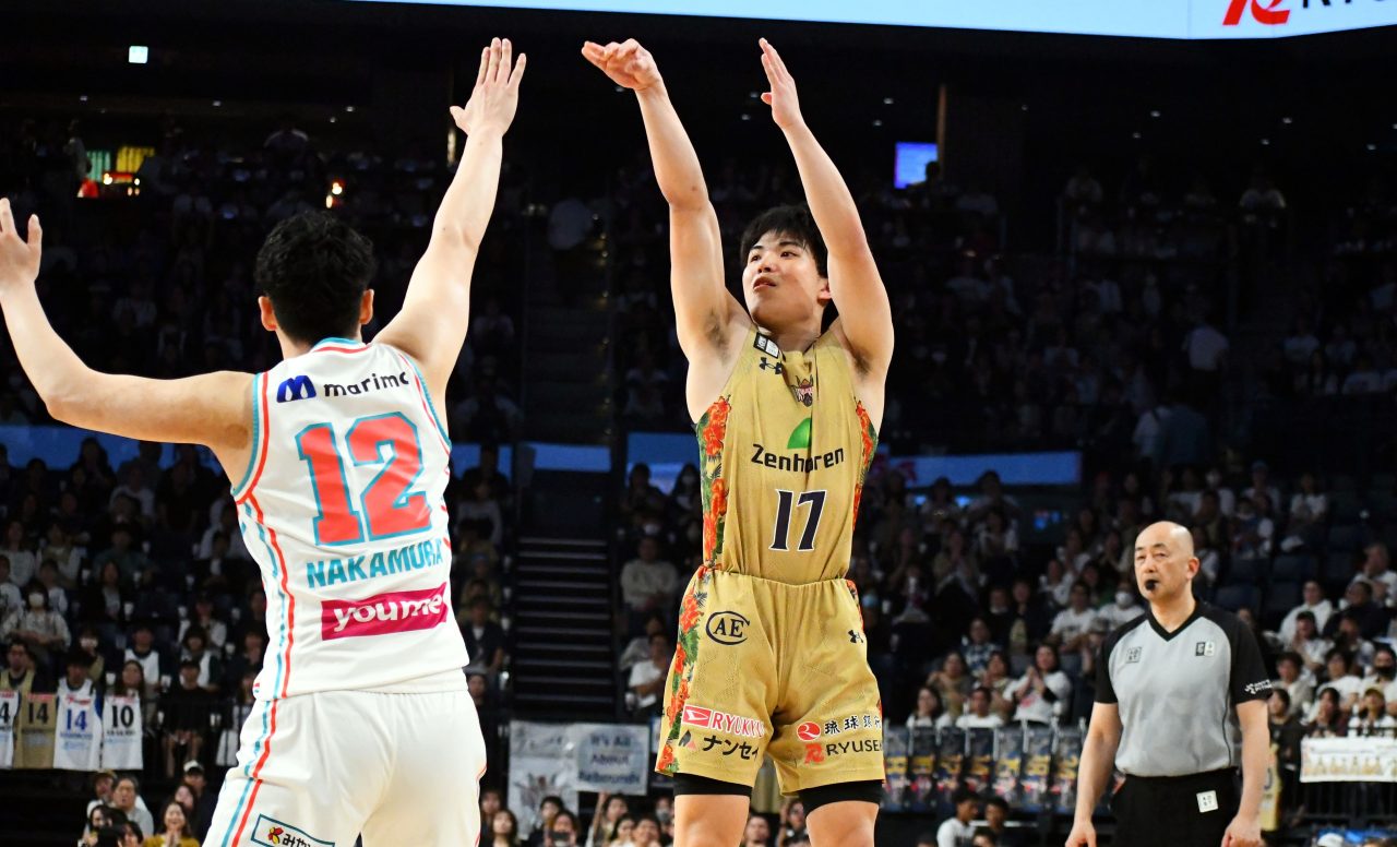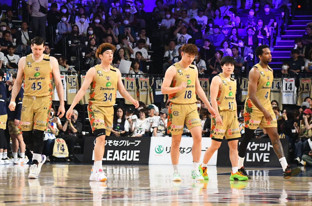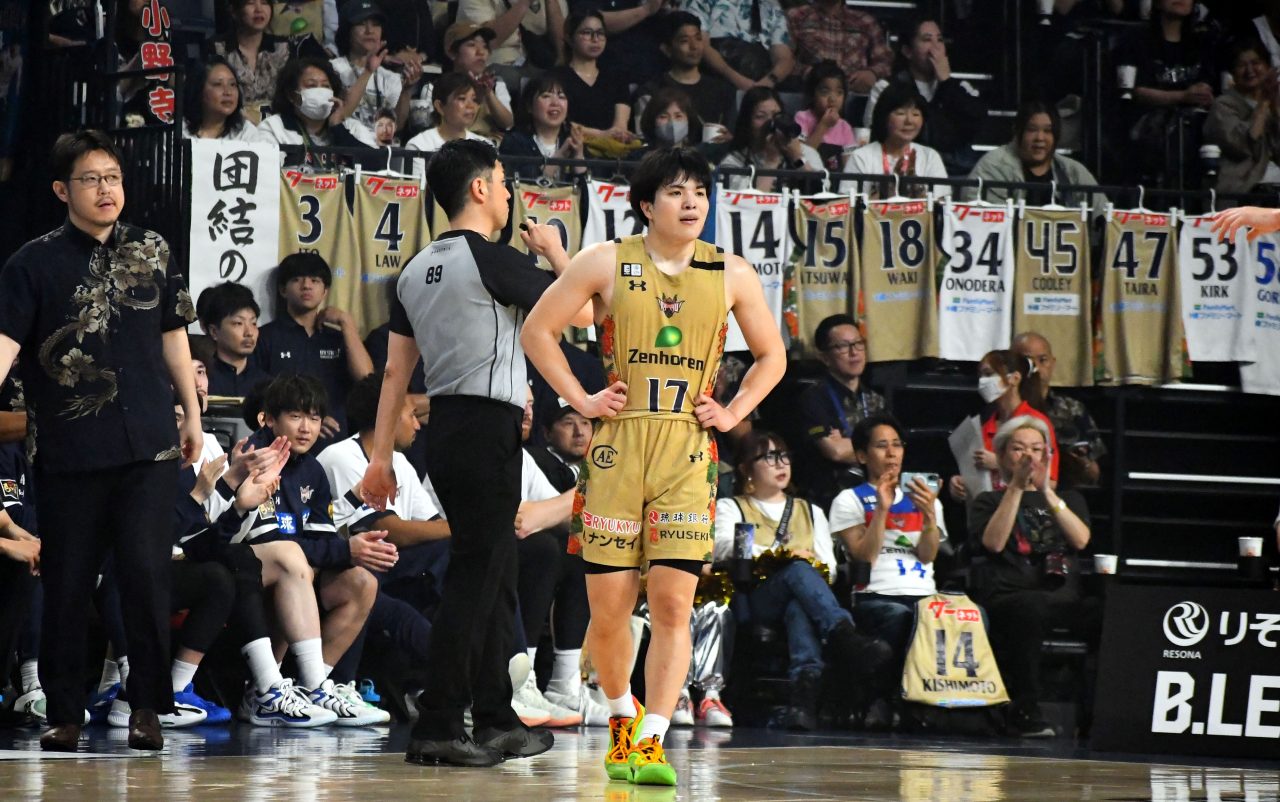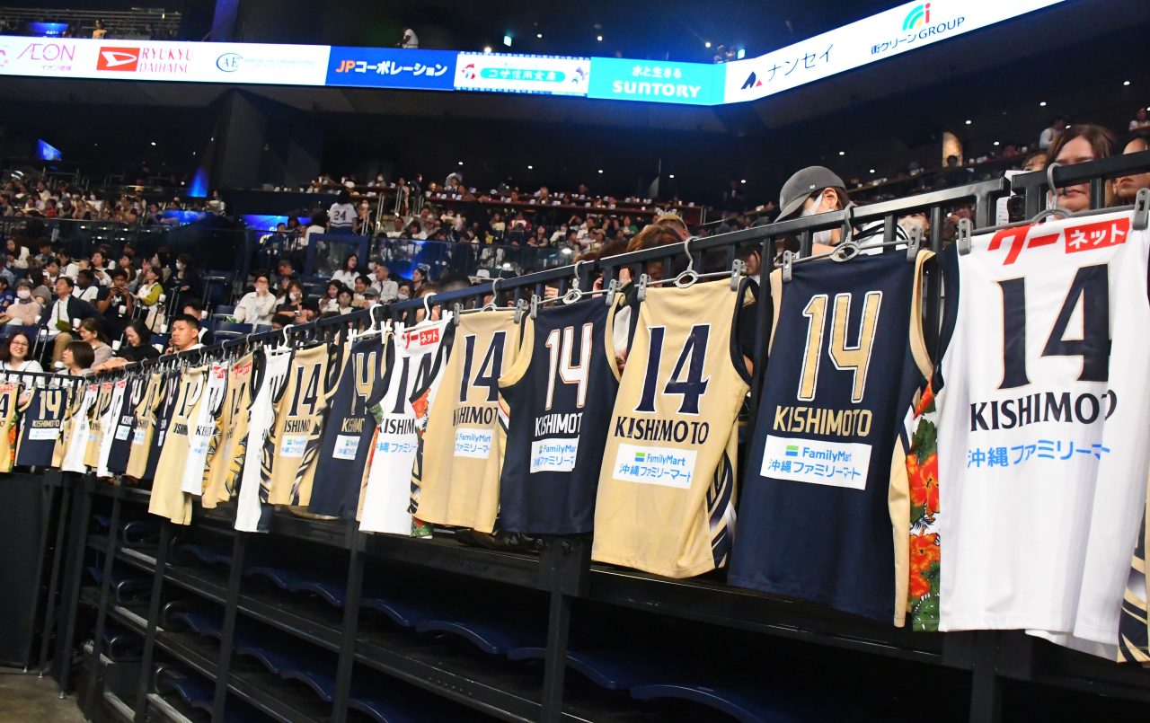 広島戦では、琉球のベンチ裏の1階客席から「背番号14」が記された岸本のユニフォームがズラリと掲げられた。レギュラーシーズンは残り4試合。熱いファンと共に「団結の力」を強め、勢いを衰えさせることなくCSに突入していきたい。