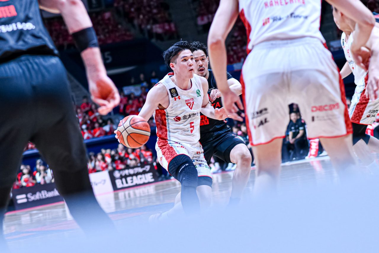 10日の第1戦は、序盤、瀬川琉久の3ポイントシュートを皮切りにクリストファー・スミスがフリースローや得意のアウトサイドシュートで得点を重ね、第1クォーター中盤から第2Qにかけて15−0のランを決めるなど、A東京を一気に突き放す。14点リードで迎えた後半も攻撃の手を緩めず、78−53と25点差をつけてシリーズを先勝した。