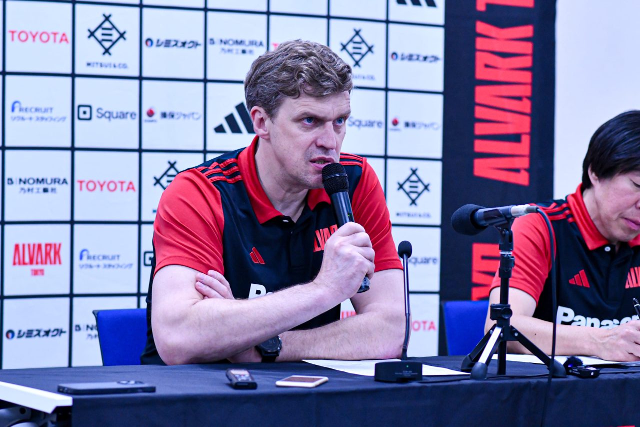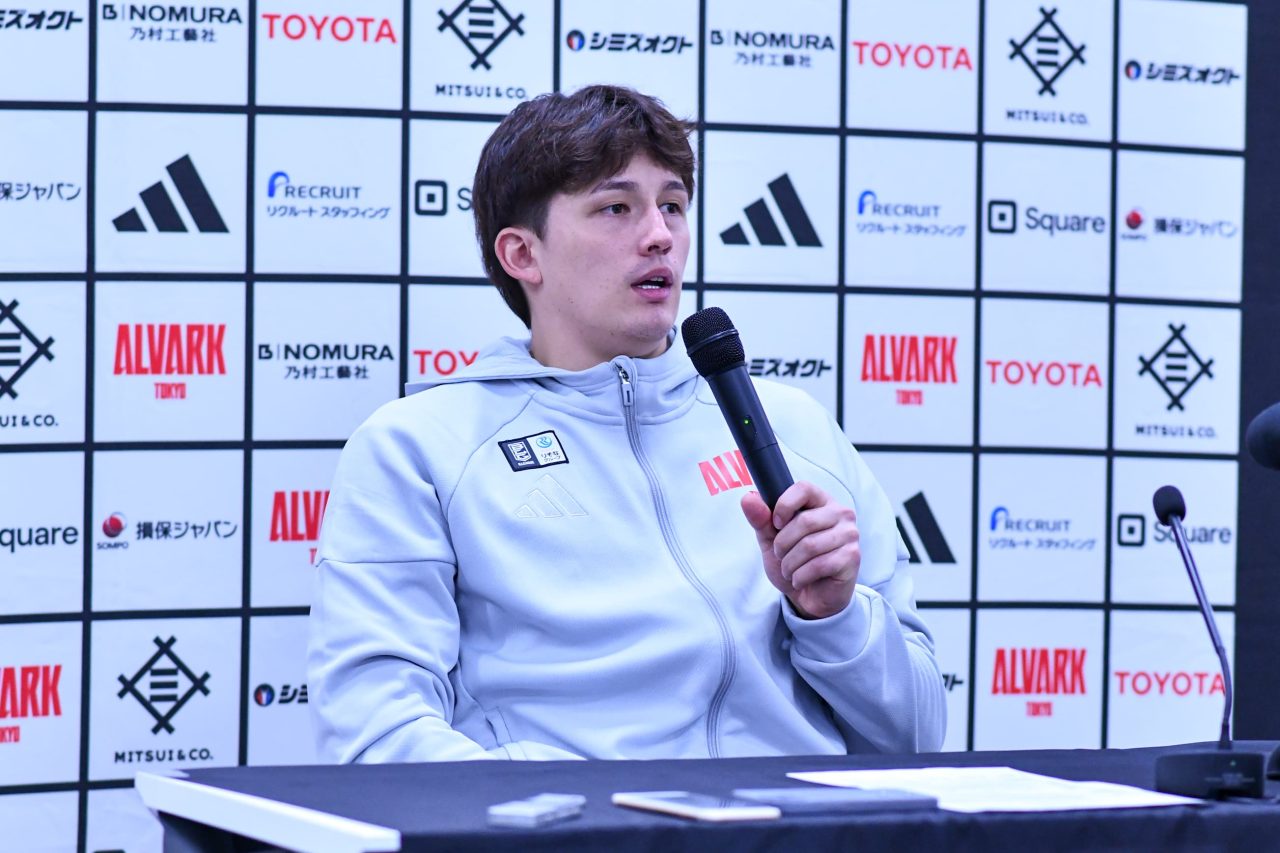 試合後の記者会見では、デイニアス・アドマイティスHCとテーブス、小酒部泰暉、大倉颯太が記者の質問に答えた。