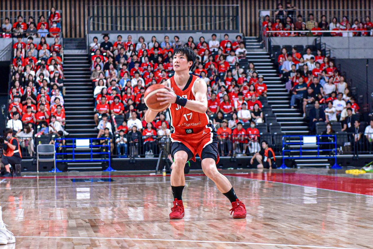 それはもうホーバスHCにブチギレられました、何回も打てって(笑)。最初ディベロップメントキャンプでは「あなた何するか分からないので」って言われて、10回中5回が(3P)シュートで5回ドライブみたいな感じでやっていて、次は10回中7回がシュートになって、8回になって、9回までいきました。「あなたは須田です」と言われました。