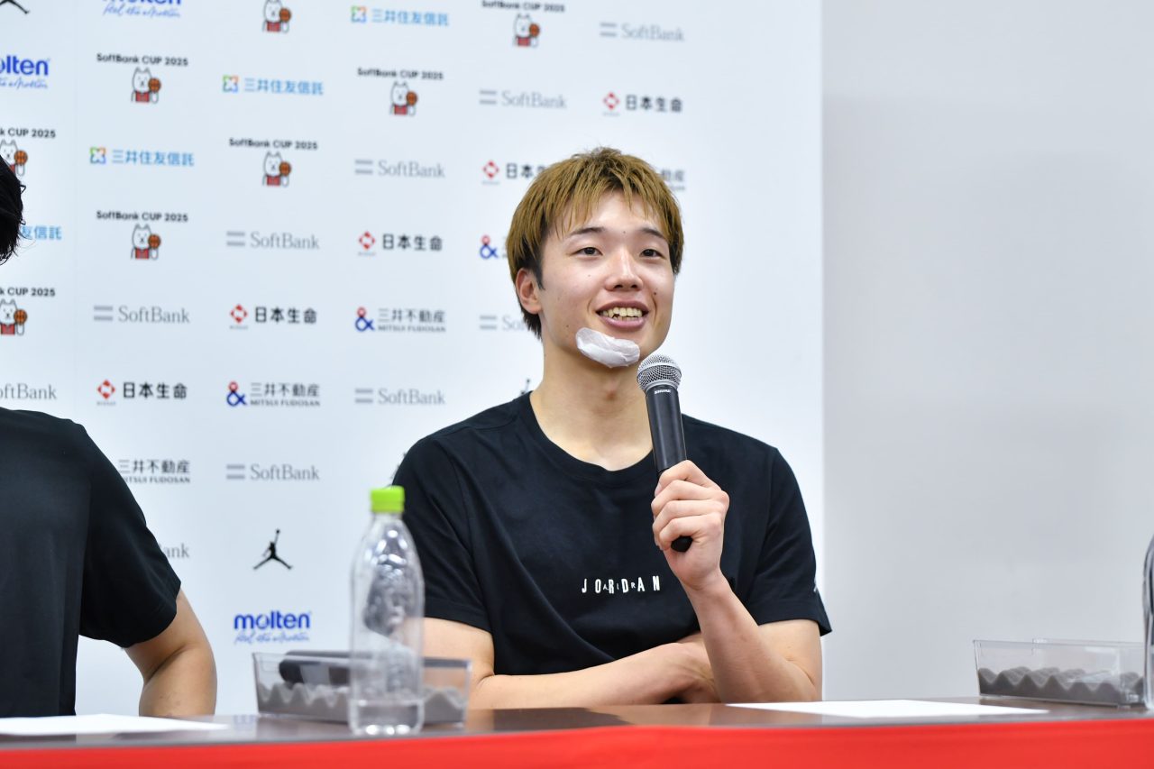 トムさんが言ったように、オープンのシュートは作れています。それをしっかりと止めきるというところをやっぱりしていかないといけないという、結果的にはそうなんですけど、過程としていいシュートは打てているというのは、いい判断材料です。ディフェンスは、韓国戦終わった後に、僕たち身長が小さいのに後手後手のディフェンスをして、後手後手のオフェンスをしているということを話し合って、なるべく先手先手で、高いところからプレッシャーをかけてマッチアップするということをしっかりと話し合った。そういうところは多少意識できたのかなというふうには思いますが、もうちょっと点差を広げて勝たないといけない試合だったなとは思います。
