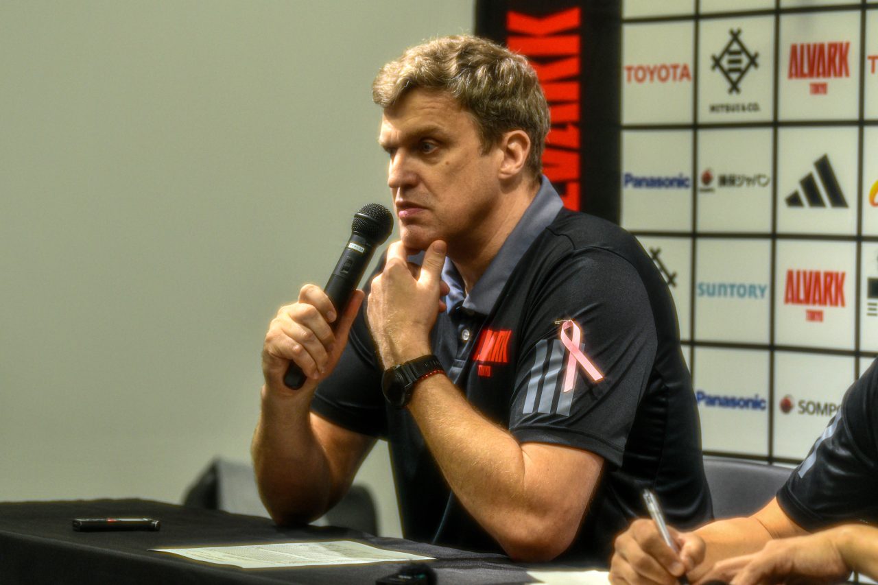 第1戦後の記者会見では、デイニアス・アドマイティスHCと安藤、大倉颯太が記者の質問に答えた。