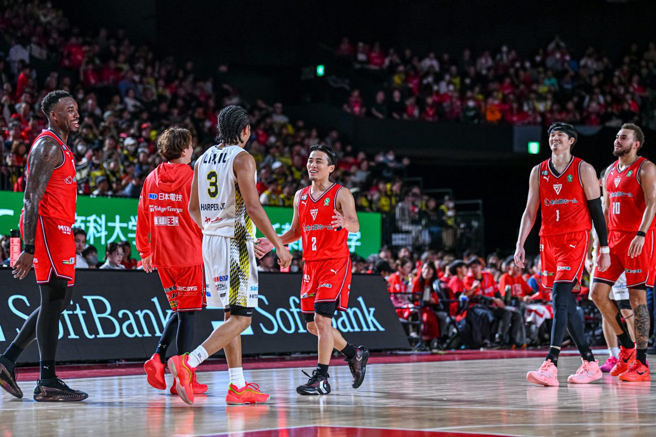 第1戦では、序盤こそ後手に回ったものの、渡邊雄太やディー・ジェイ・ホグらの活躍で徐々にリズムをつかみ、リードを広げていく。第4Q残り25秒には、今季限りでの引退を発表している西村文男が3ポイントシュートを華麗に決め、84−63で快勝した。
