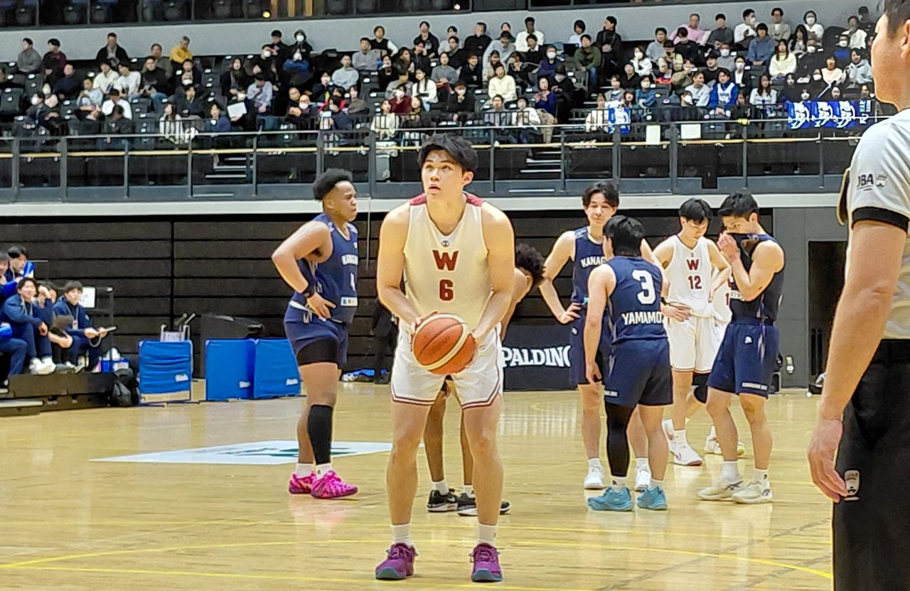 第2クォーター(Q)の開始約5分で25対44。早稲田は19点差をつけられた。ただ、そこから徐々に巻き返す。守備でリズムを作り、攻撃は外角シュートにこだわらず、ペイントアタックや1on1を仕掛けた。第2Q終了時には6点差まで縮め、最終的には83対72で勝利した。