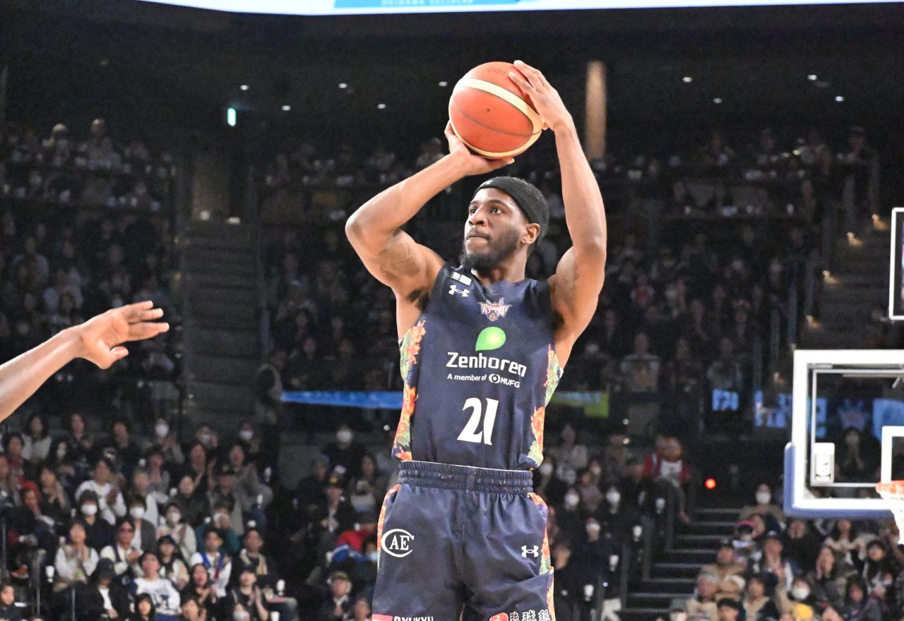 ここまでEASLも含めてフル出場であり、ブラックベアーズ戦では229cmの巨体センターを相手に体を張った。ロー不在の中でスモールフォワードタイプの外国籍選手にマッチアップする機会が増え、より足も使う。本来のパワフルな動きが少しずつ影を潜め、直近の仙台戦ではリバウンド数が今シーズン最少タイの5本にとどまった。