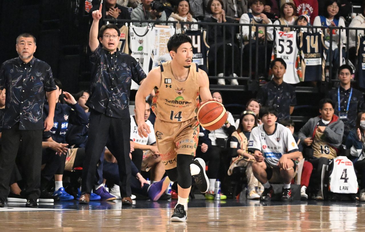 初戦は序盤こそ競り合ったが、第2Qから琉球が引き離す展開。東アジアスーパーリーグ(EASL)を含めた厳しいスケジュールやヴィック・ロー不在の中、昨年末時点では疲労が見えていたジャック・クーリーとアレックス・カークが動きのキレを取り戻し、前半の2ポイントシュート成功率がチームで93.7%(16本中15本成功)に達した。