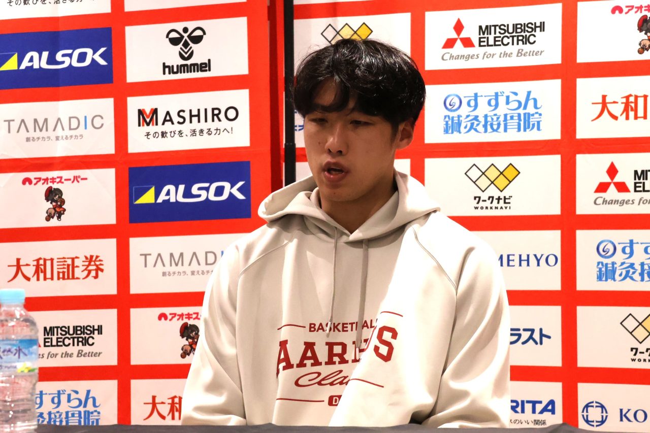 セカンドユニットとして出るときは、良いときの流れもあれば悪いときの流れもあるので、流れに乗るというよりは、自分たちの色に染めていこうと泰斗(中東)さんとか、ゼイ(マーフィー)と常々話していることなので、そこは意識しているところで、僕らが出たらそのバスケットをしようというのは強みとして考えています。今日はそこで積極的にいけたかなと思います。