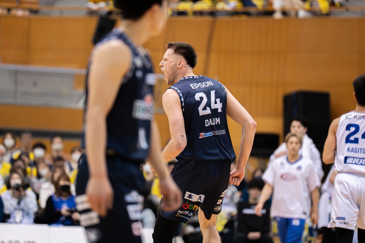 目下6連勝中と勢いに乗る信州だが、その中でも目覚ましい活躍を見せているのがマイク・ダウムだ。青森との第1戦では27分13秒の出場で28得点9リバウンド、第2戦では15得点4リバウンド5アシストを記録してチームをけん引。今季からチームに加わり、シーズン中盤にはけがに苦しんでいたダウムだったが、徐々に調子を上げてきている。
